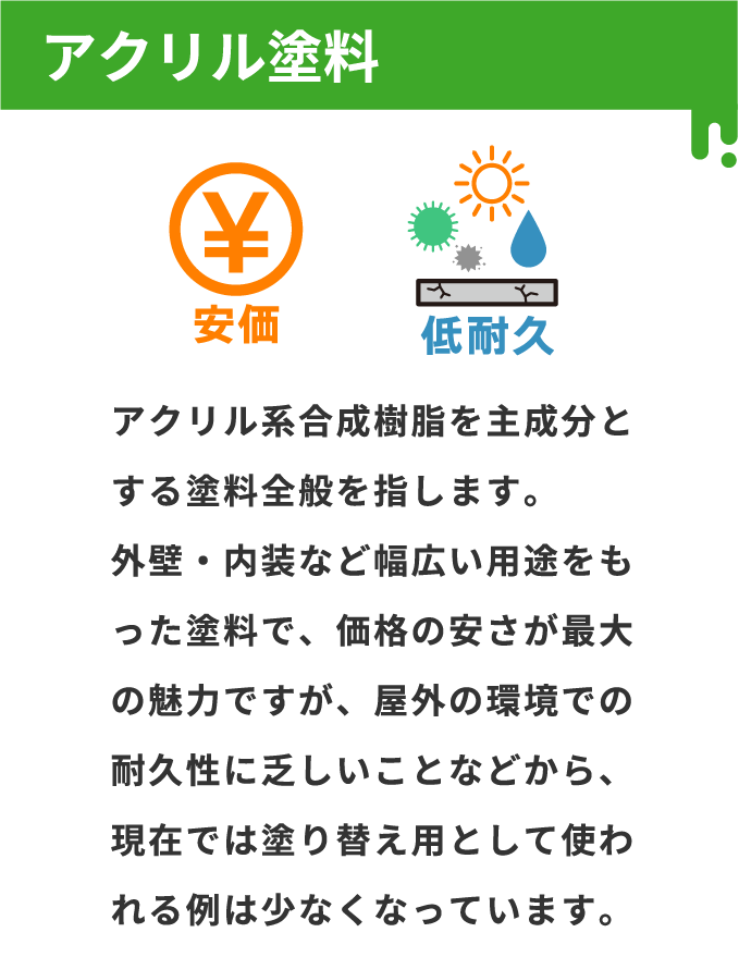 なお、壁や屋根の状況によって、使用できる塗料は変わりますので、お見積りの際にご相談ください。